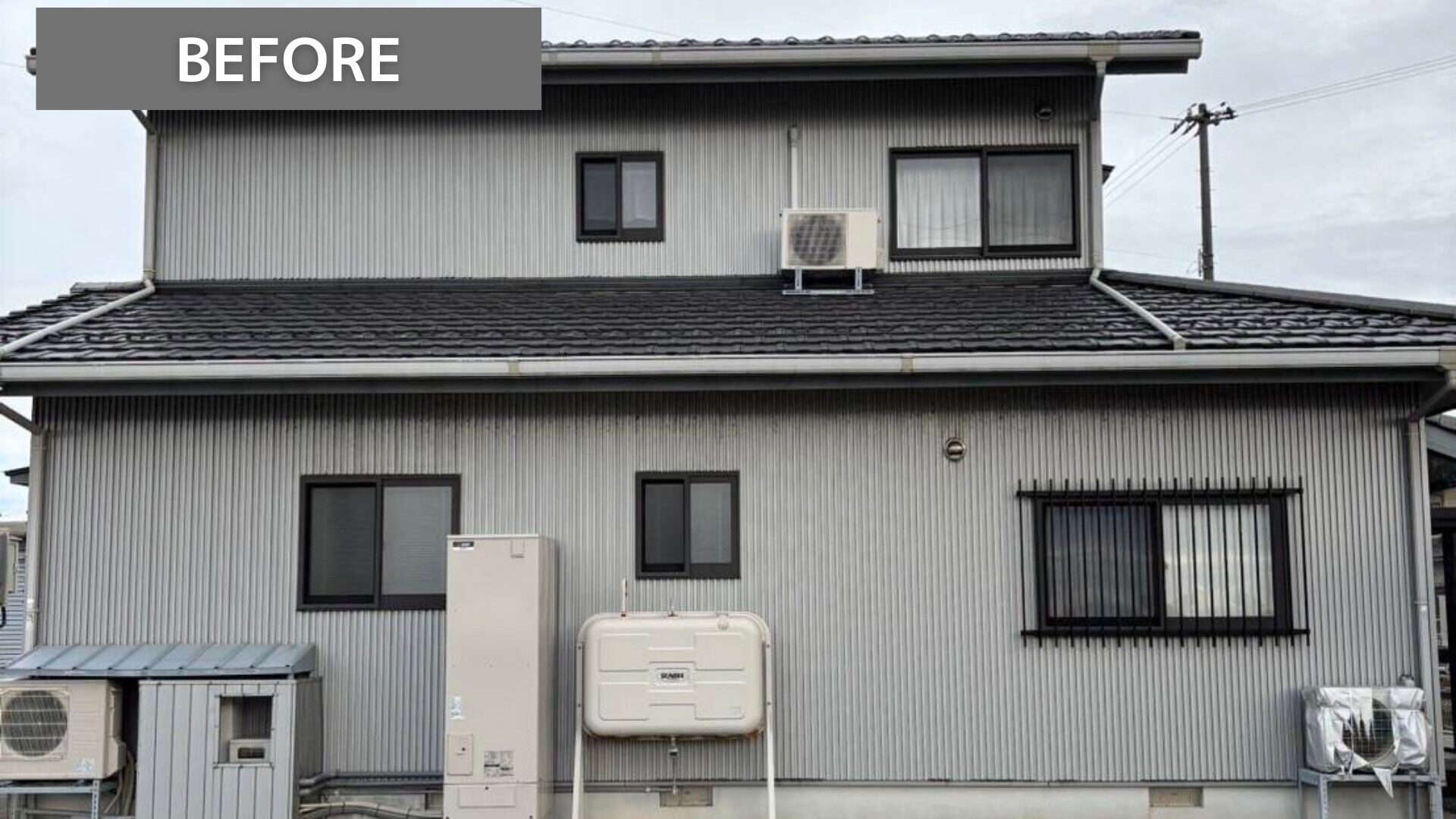 外壁全体に経年による色あせや汚れが見られました。