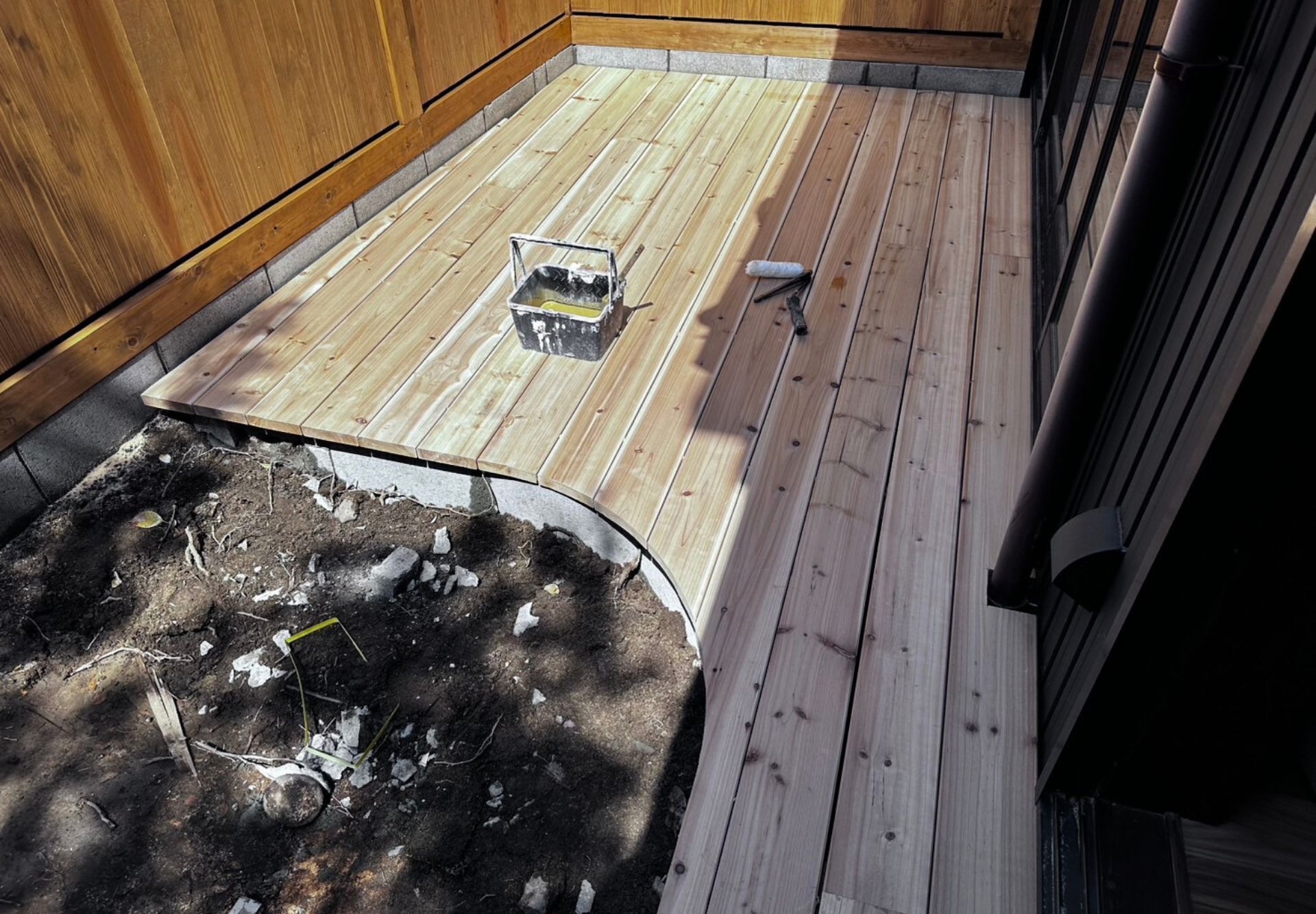 今回は古民家の改装工事に伴い、外部・内部の塗装を行いました。塗装箇所がたくさんあるので、外部編と内部編に分けて施工例をご紹介していきたいと思います!外部編では、和室サッシ・軒・屋根・玄関扉と建具・外部収納・中庭塀・床デッキの塗装をご紹介します。