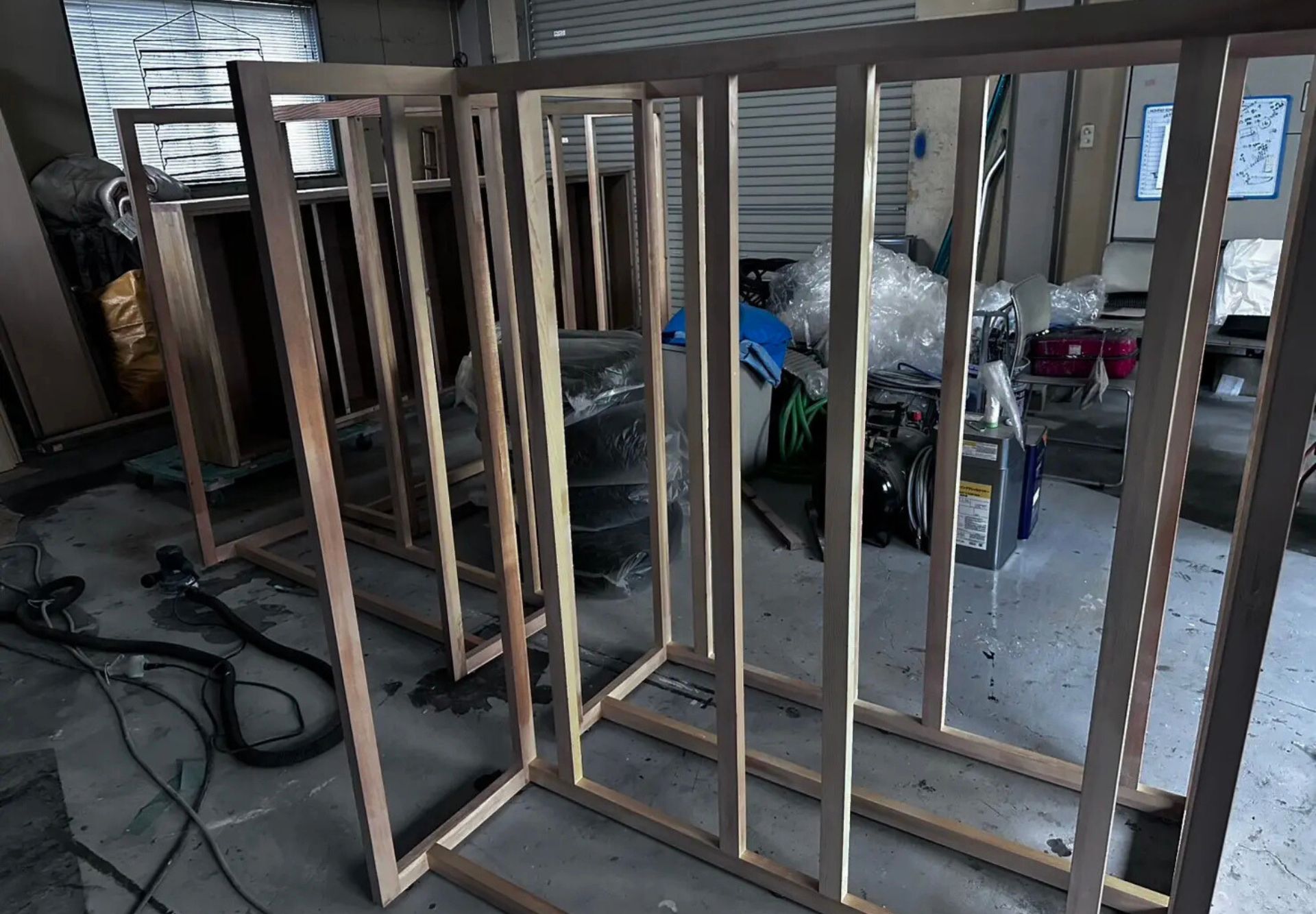 塗装前の家具は木の素地が見えた状態です。 ここから染色と仕上げ塗装を行っていきます。