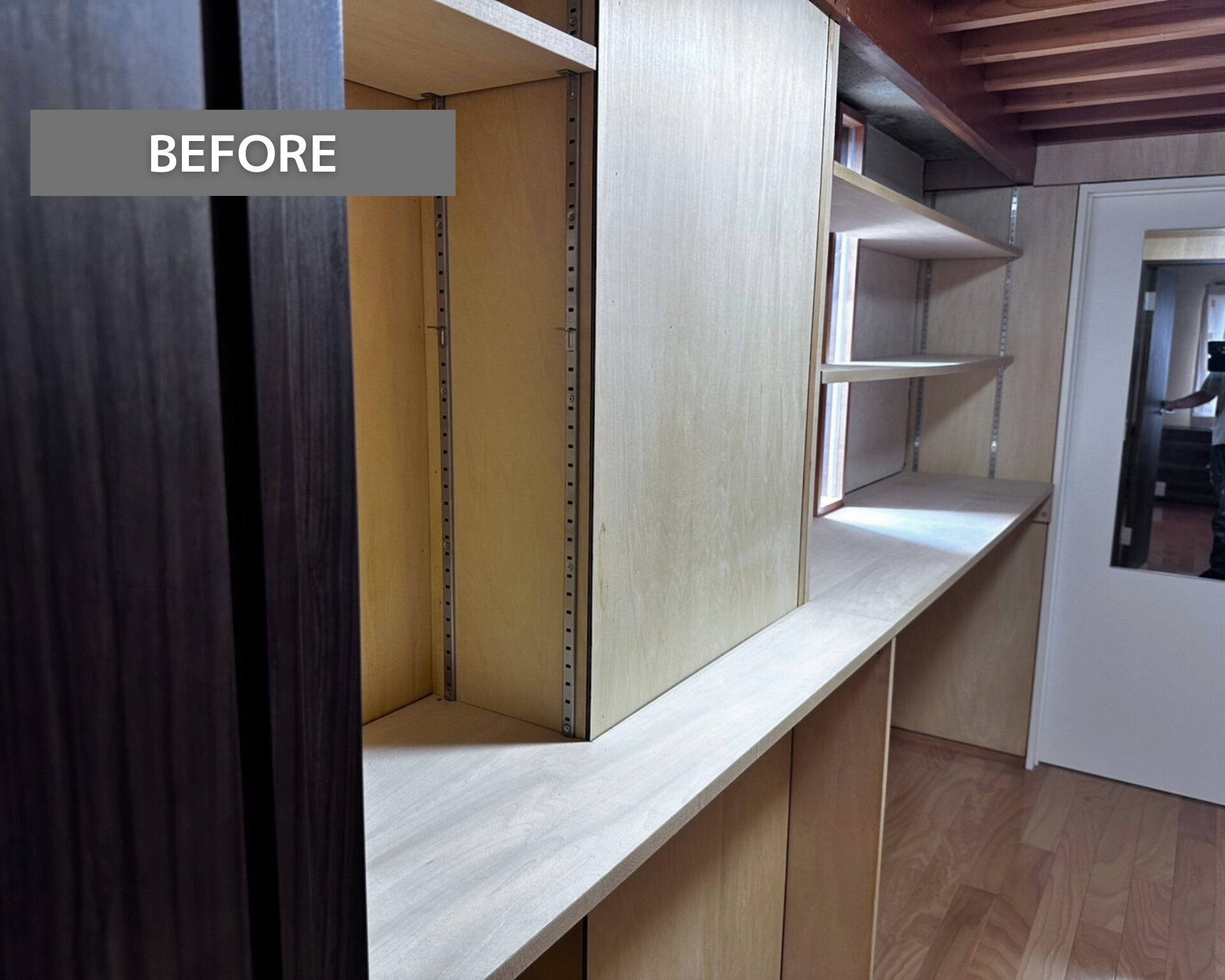 クローゼット施工完了です。 汚れや色ムラを整え、均一で美しいクローゼット空間に改善しました。