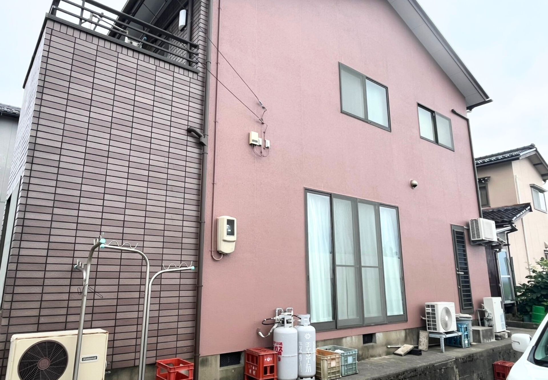 外壁上塗りが完了です!外観にしっかりなじみ派手すぎずちょうどいい雰囲気に仕上がりました。