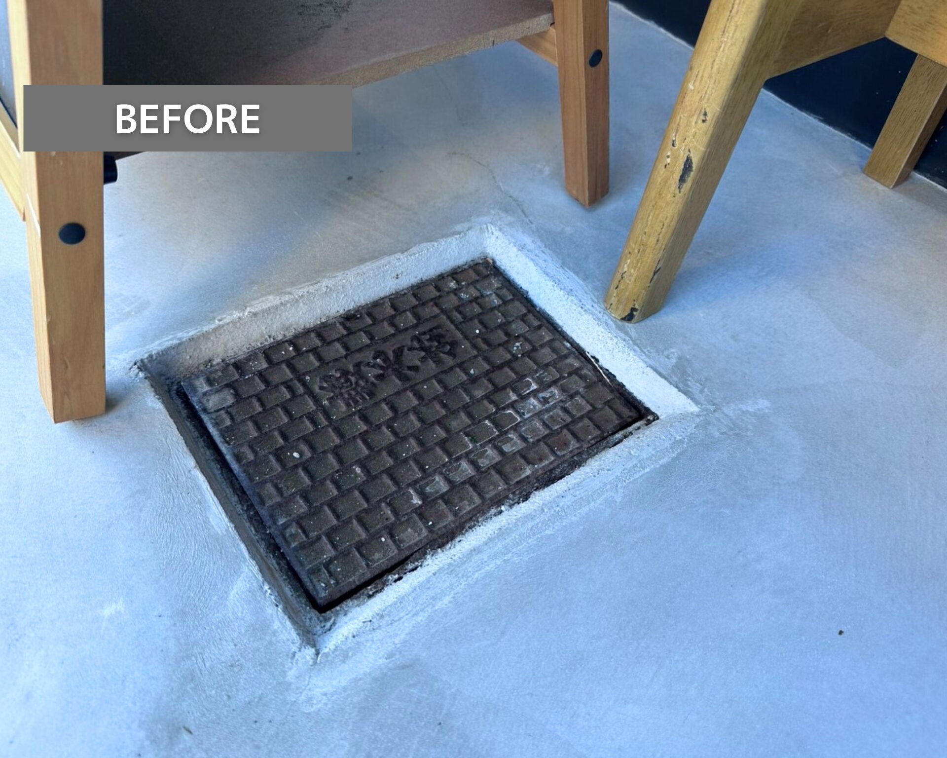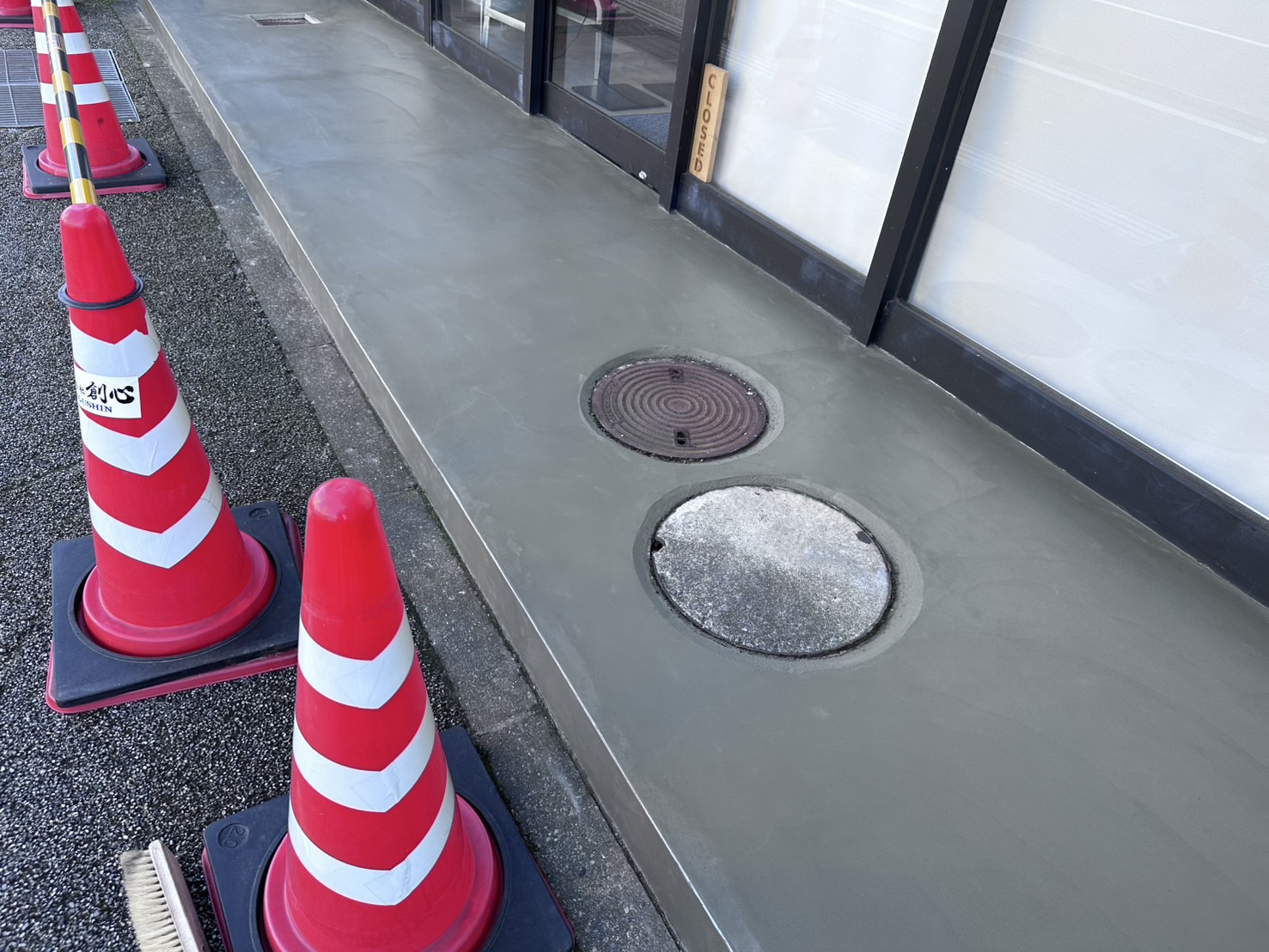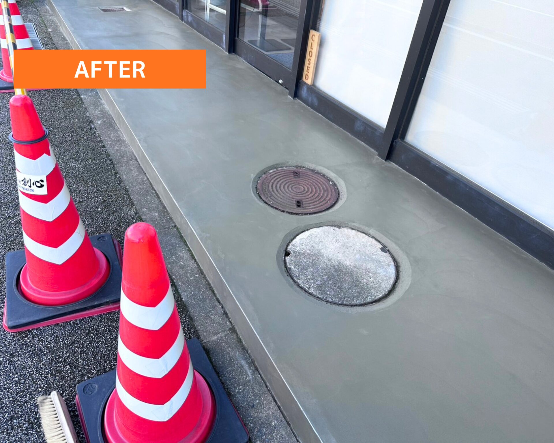 お店の印象を左右する外まわり。マンホールや散水栓といった小さな部分も塗り替えることで、全体の雰囲気がグッと引き締まりました。店舗の外観や設備の塗装・リフォームをご検討の方は、ぜひお気軽にお問い合わせください。