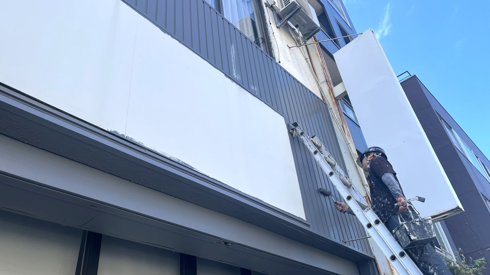 大人カフェ漂う単色グレーに。建物全体がスッキリとした印象になりました。 見た目だけでなく、これからの耐久性もしっかりアップしました。