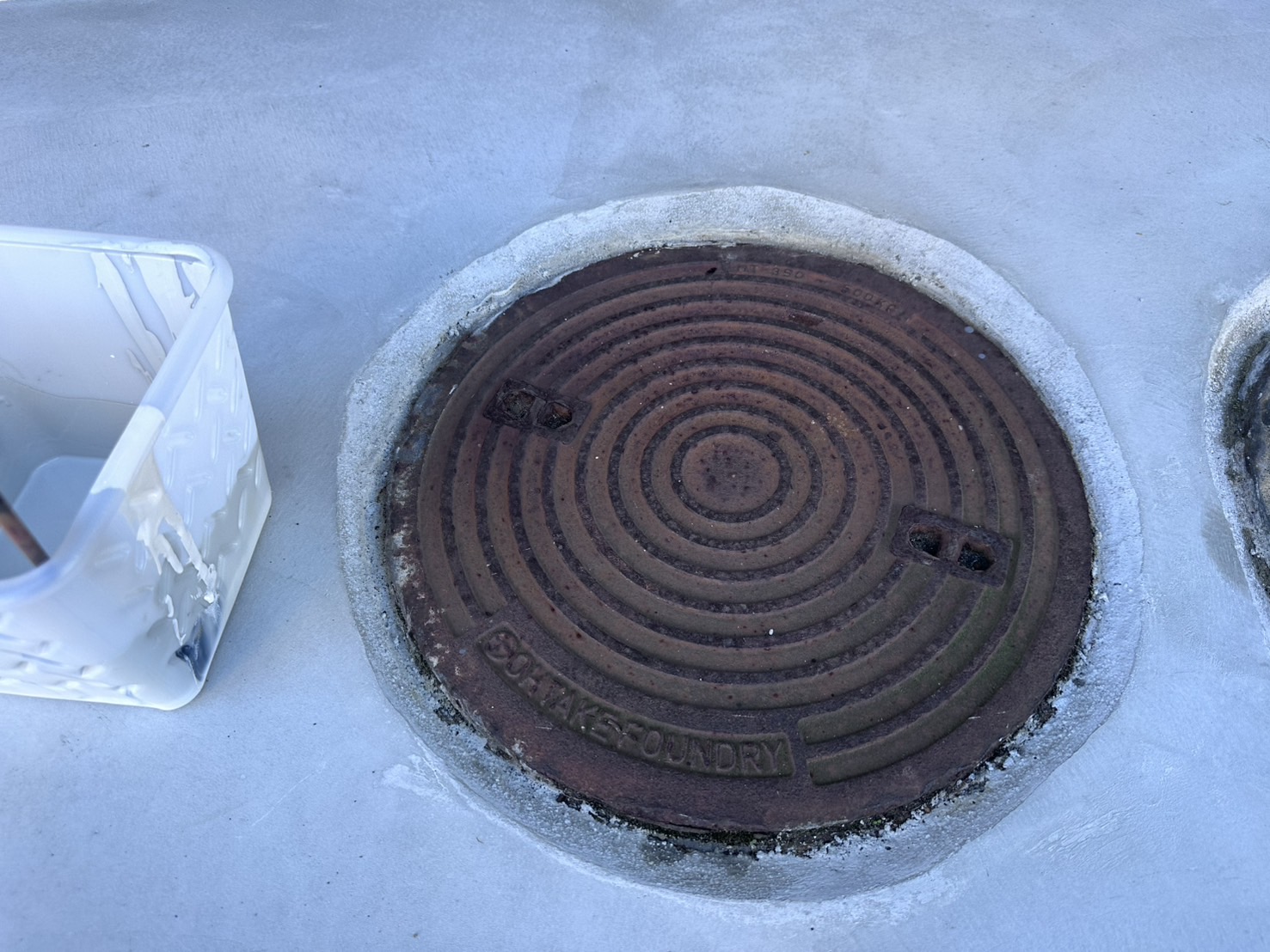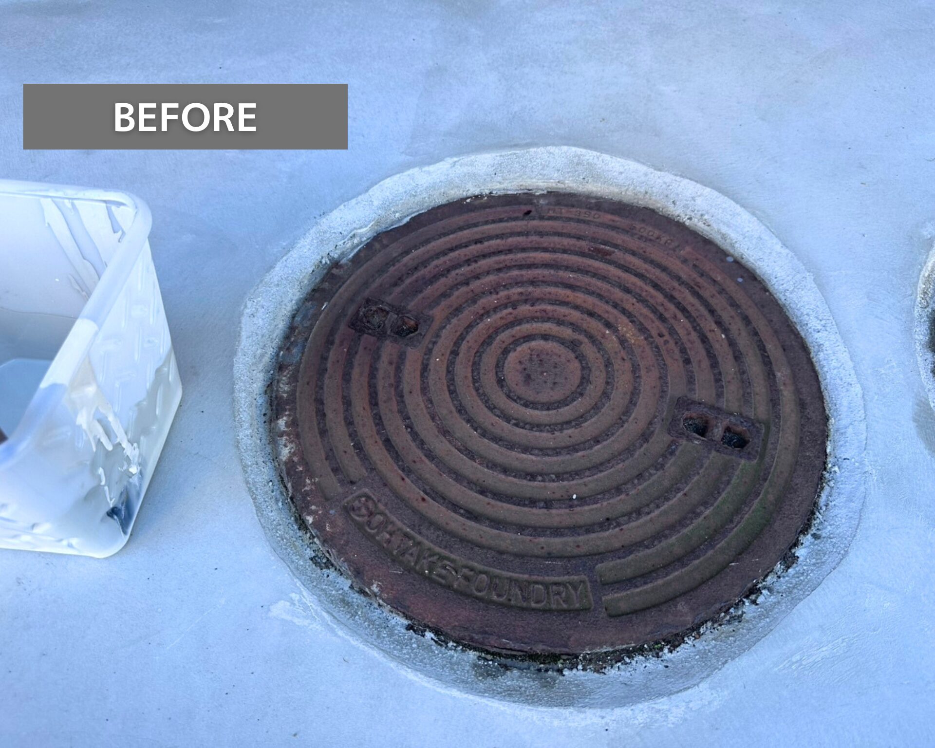 マンホール施工前の様子です。塗装がはがれ、サビが出ている状態でした。