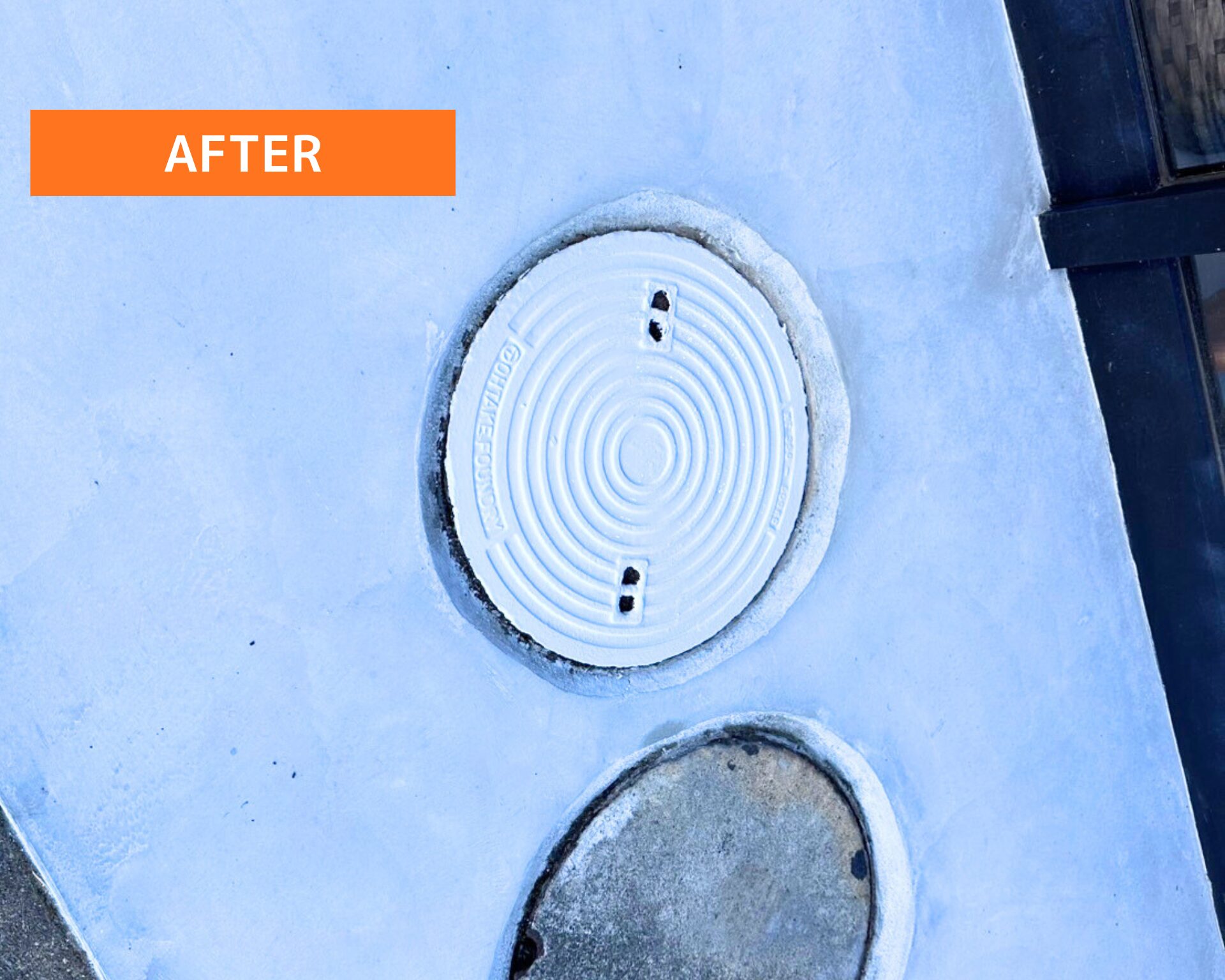 サビが出ていたマンホールも、塗り替えできれいにリフレッシュ! 細かな部分まで整えることで、外観全体がスッキリした印象になります。