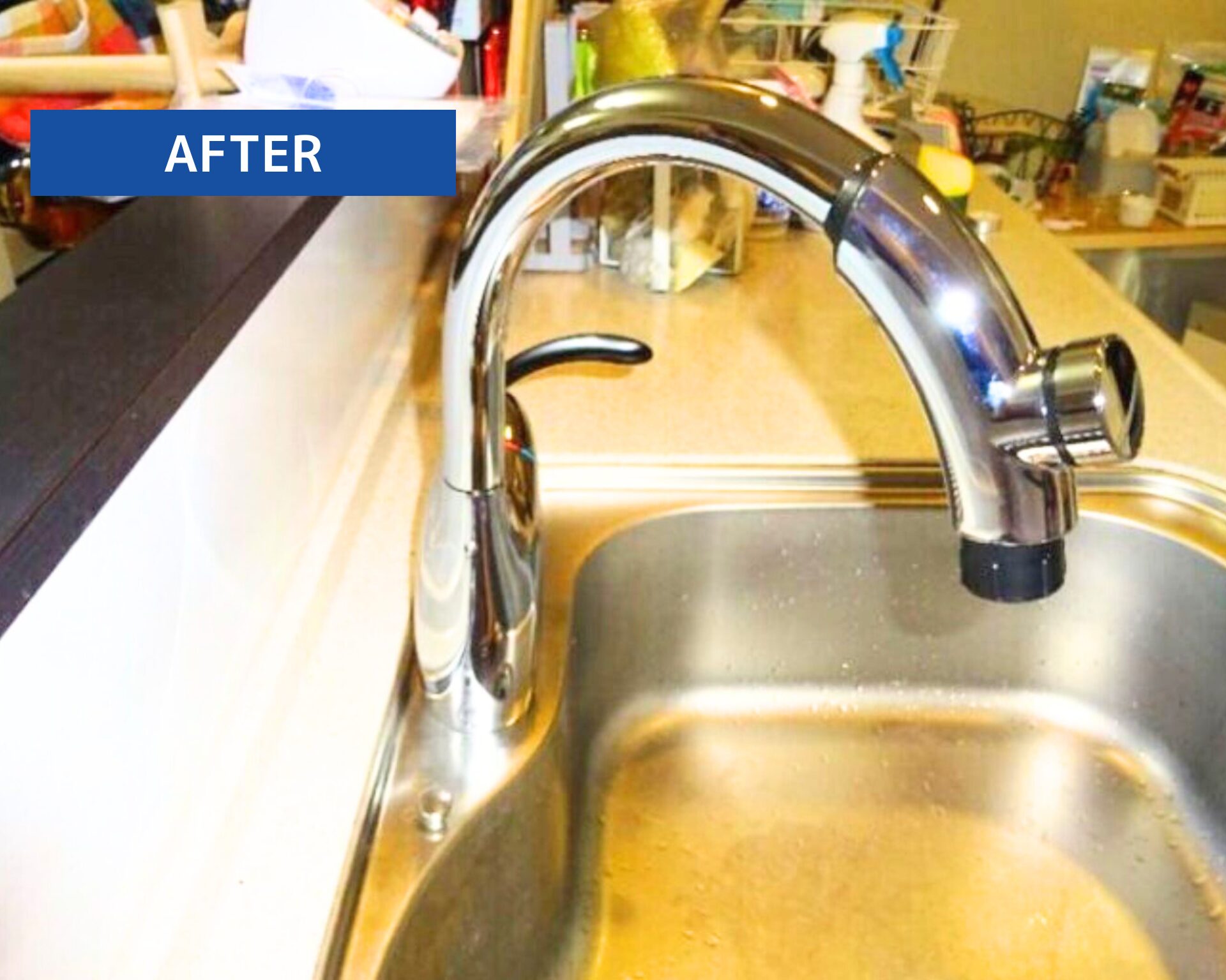施工完了です。 水栓交換を行い、動作もスムーズで使いやすくなりました。 ちょっとした工事でも、毎日の快適さが変わります♪