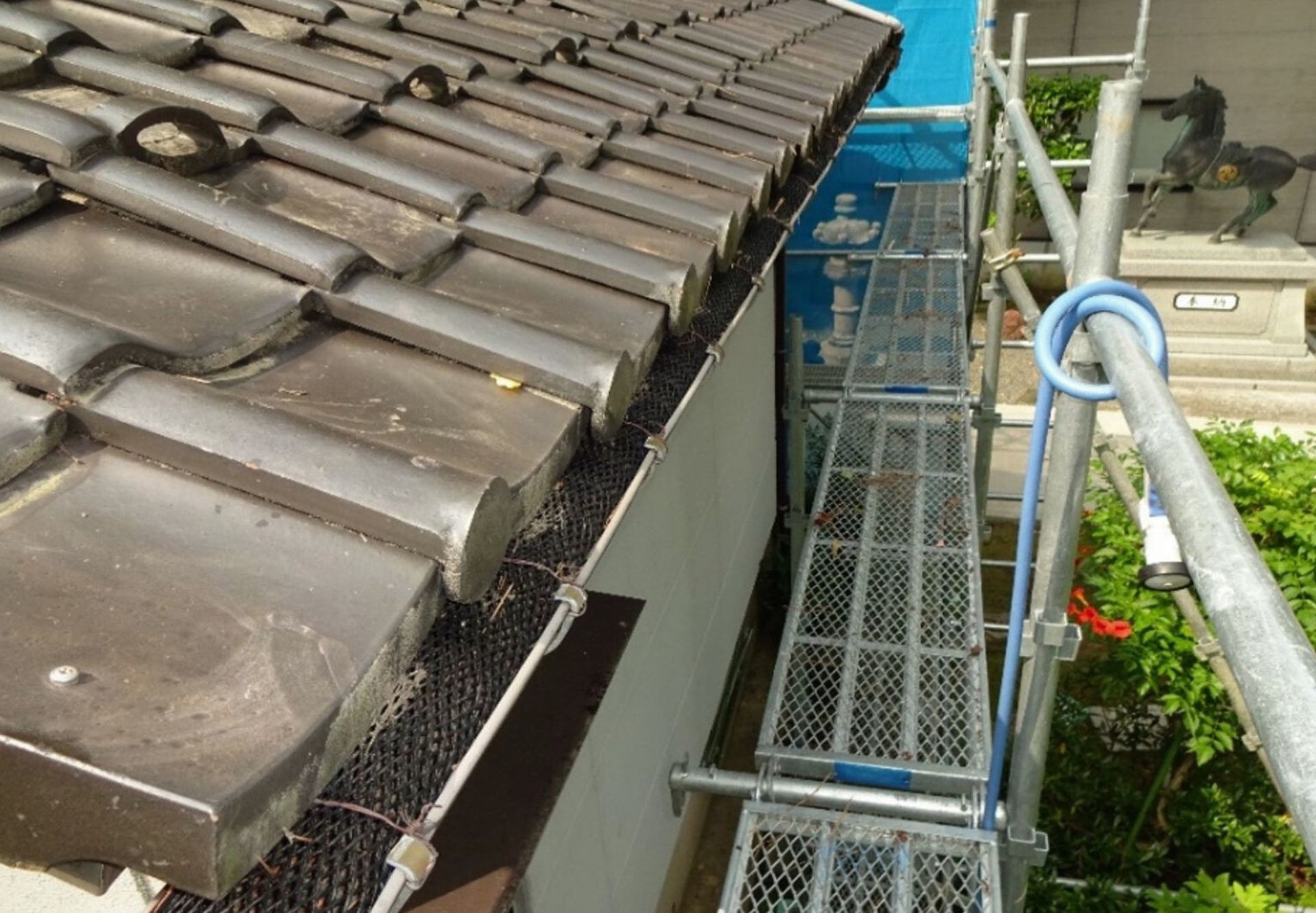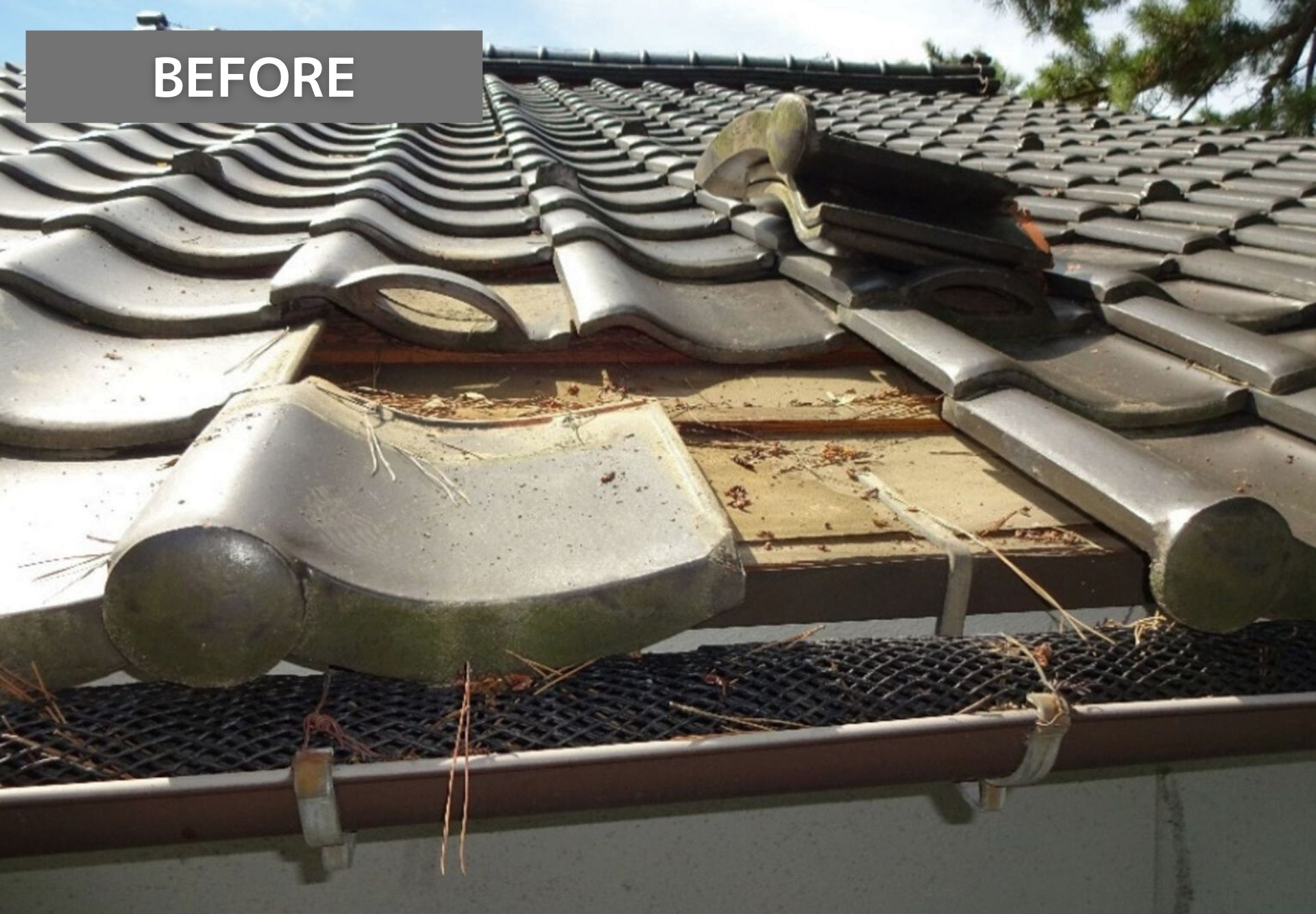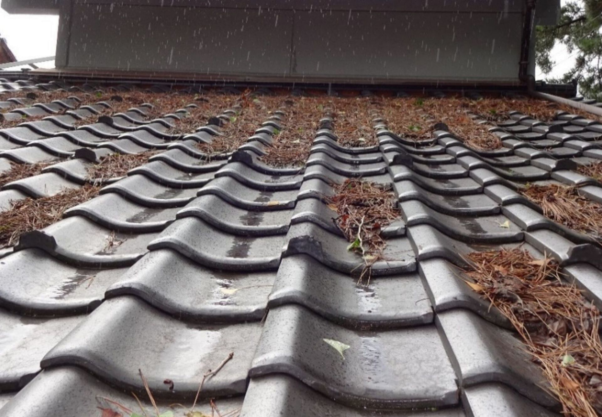 瓦のズレや割れが見られ、一部に隙間ができている状態でした。屋根には落ち葉や汚れも溜まっており、排水の流れも悪くなっていました。今回の工事では、瓦の補修と屋根清掃、エアコンドレン配管を新しく交換し、雨漏りの原因をしっかり改善していきます。