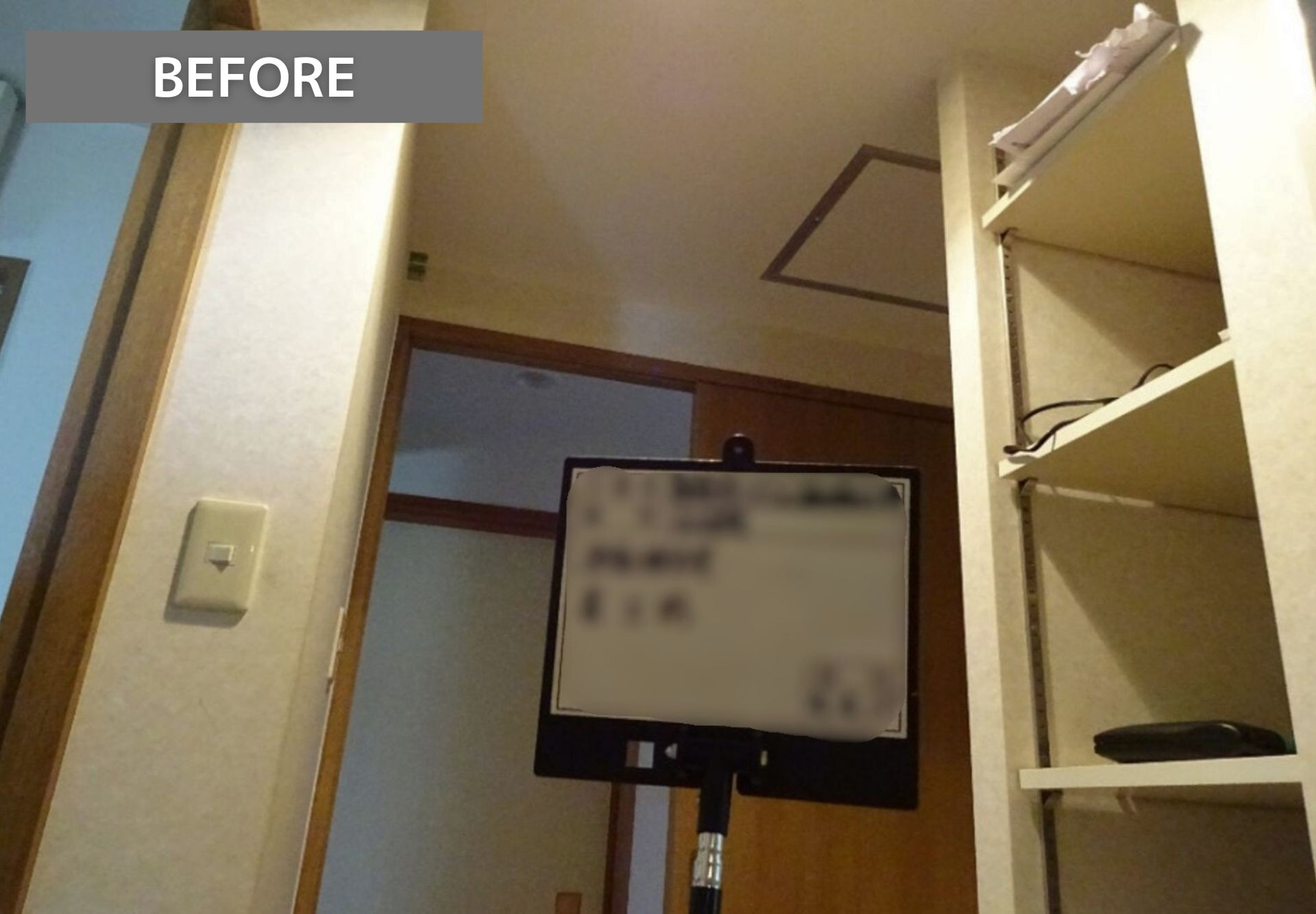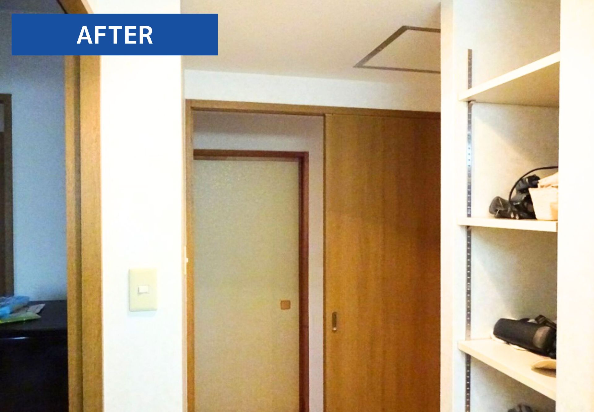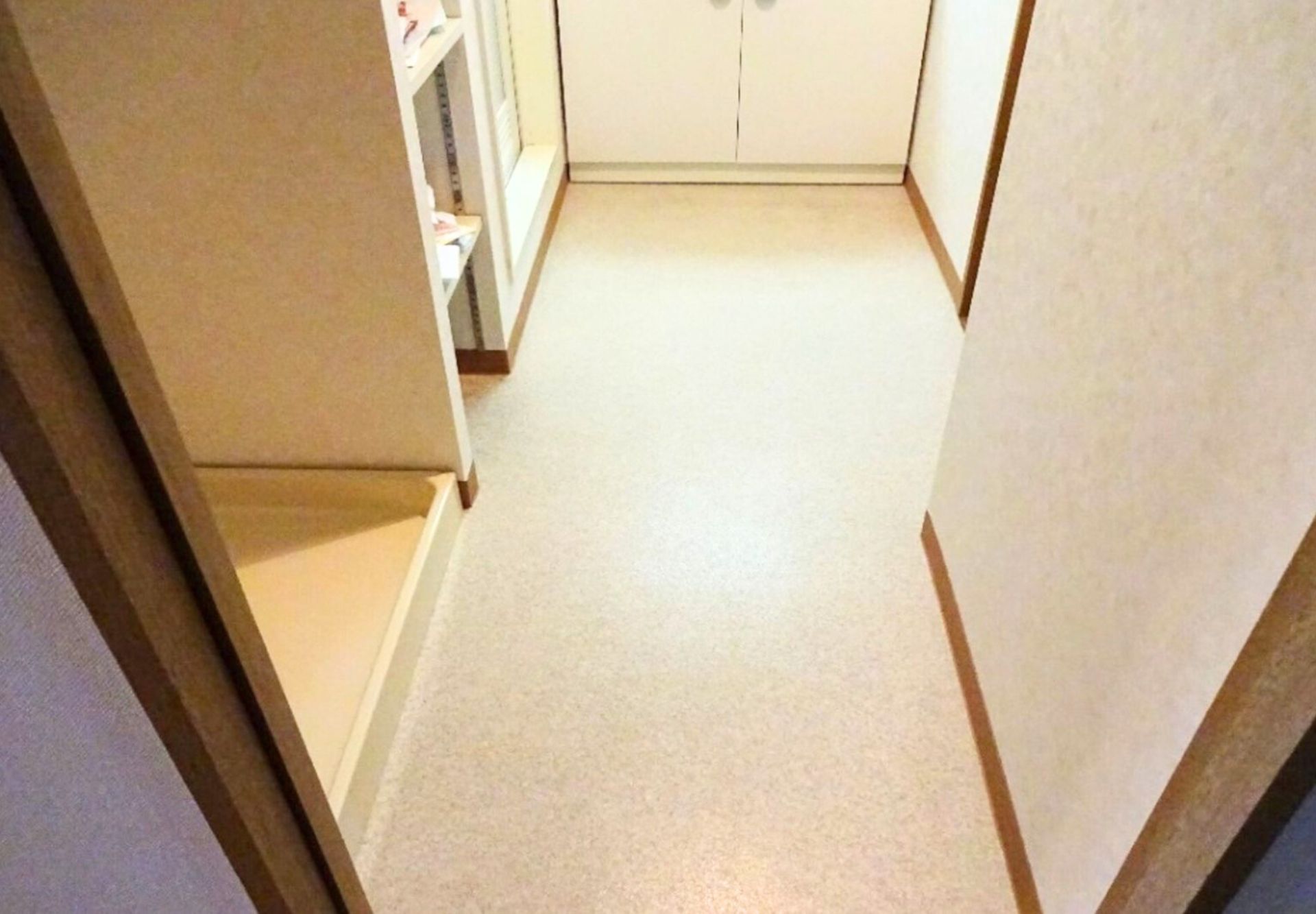 洗面脱衣室とトイレのクロスは、経年により色あせや継ぎ目の浮きが見られる状態でした。湿気の影響を受けやすい空間でもあるため、全体的に暗い印象になっていました。今回のクロス貼り替えで、空間を明るく清潔感のある仕上がりに生まれ変わらせます。