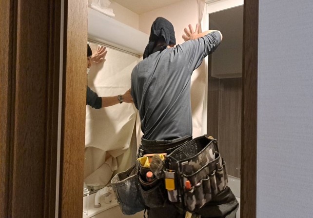 | リフォーム内容 | 《 浴室 》 ・既設浴室解体 ・既設浴槽撤去 ・ユニットバス組立 ・入口四方枠取付 ・壁ボード補修 《 洗面脱衣室 》 ・壁下地処理パテ飼い ・クロス貼り替え 《 トイレ 》 ・既存トイレ止水 ・既存トイレ撤去 ・配管点検 ・新規トイレ設置 ・給水管接続、止水栓調整 ・動作確認 ・清掃 |