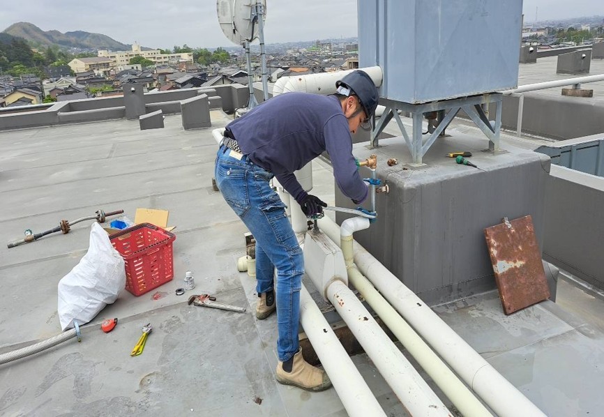 金沢市 マンション 屋上 給水管交換 バルブ交換