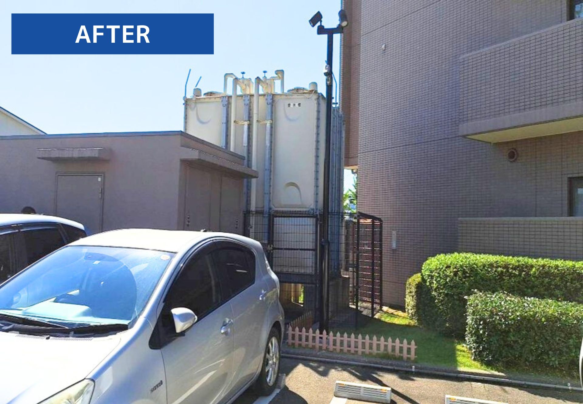 街灯ポール立て替え、柱の保護が完了しました!夜でも安心して利用できる明るさと安全性が整いました。マンション共用部設備の修理や交換などお気軽にご相談ください。