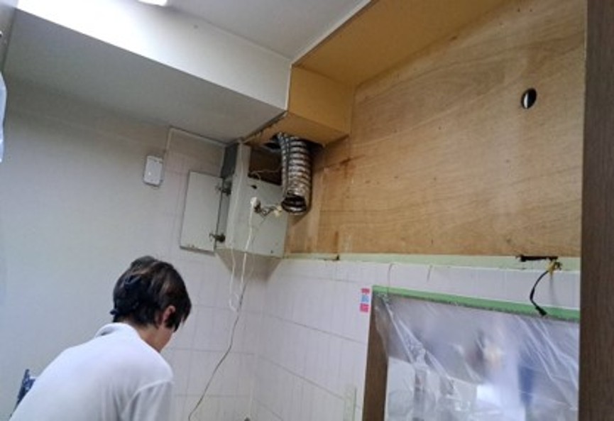| リフォーム内容 | 浴室 ・ユニットバス解体 ・ユニットバス組立 ・壁パネル貼り替え キッチン ・キッチン解体 ・床モルタル塗り ・キッチンパネル貼り ・キッチン取付 ・キッチン下台取付 ・天井クロス捲り ・天井クロス貼替 ・床クッションフロア捲り ・床クッションフロア貼替 洗面 ・壁クロス捲り ・壁クロス貼替 ・床クッションフロア捲り ・床クッションフロア貼替 洋室 ・床絨毯カビ除去 クローゼット ・内部解体 ・クロス捲り ・クロス貼替 その他 ・換気扇(シロッコファン)取付 ・吊り戸棚取付 |