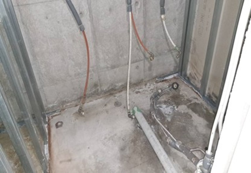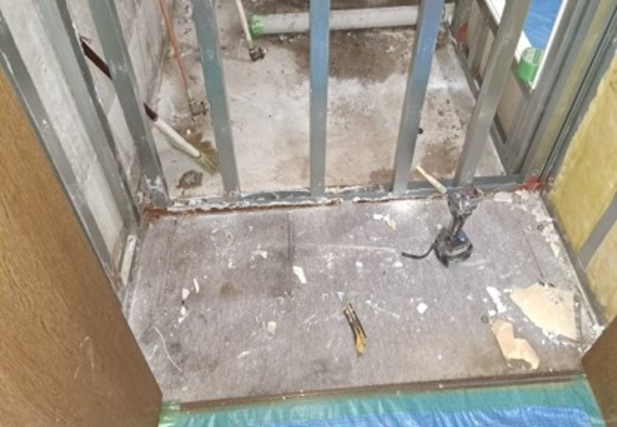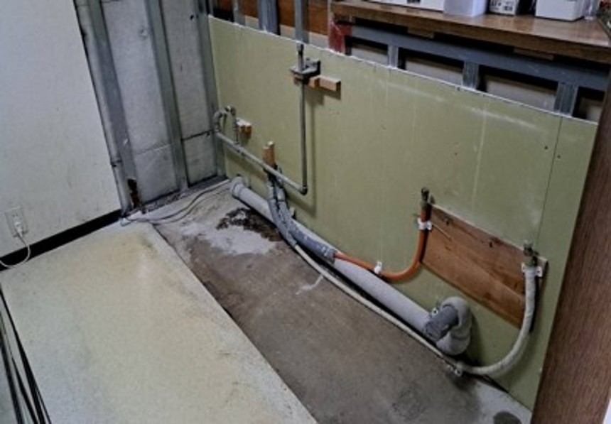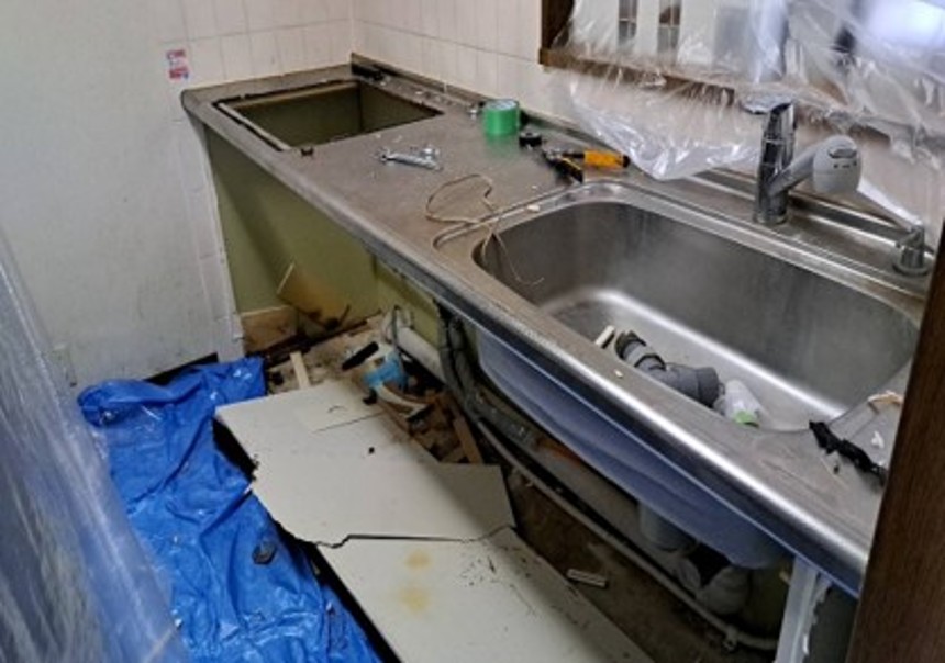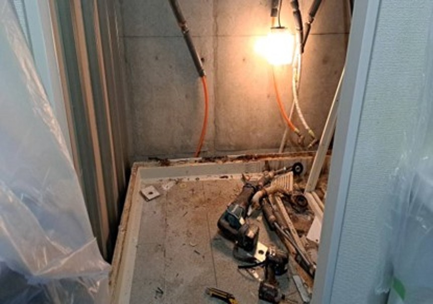 まずは浴室・キッチン・クローゼット内部の解体をしていきます。キッチン解体後床の状態が悪かったため、モルタルで補修をしました。