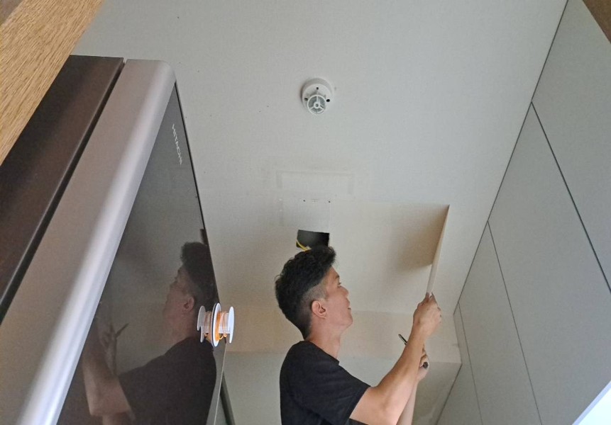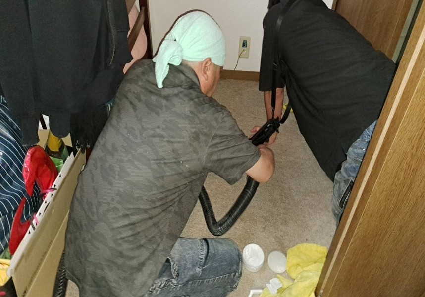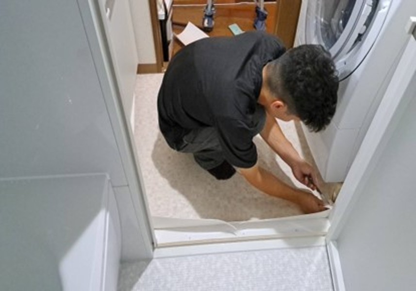 カビの状態を確認しながら専用機械でカビを除去していきます。最後に、全体の清掃、動作確認を行いリフォーム完成です!