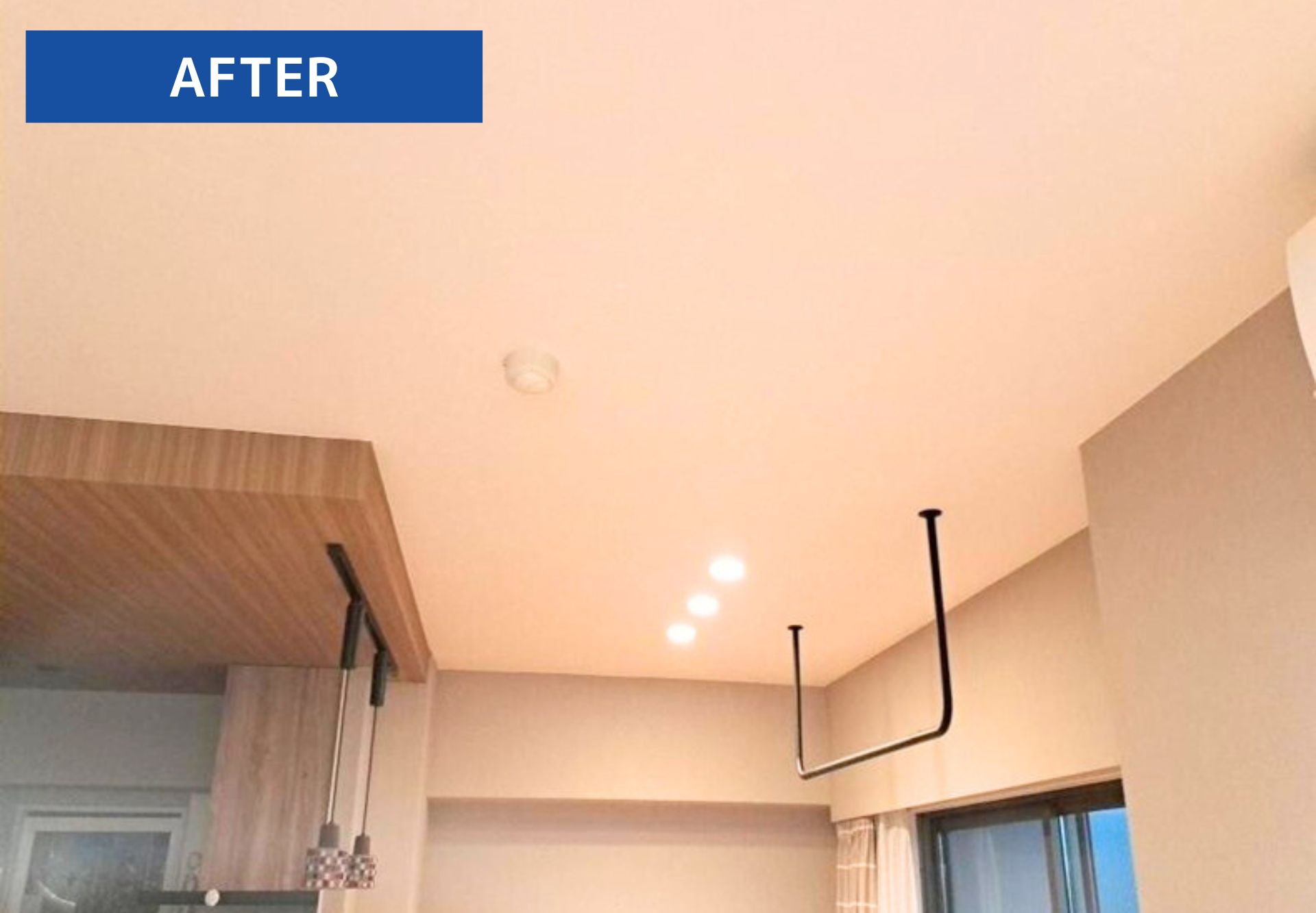 漏水復旧に伴う内装リフォームが完了しました!天井まわりがすっきり仕上がり安心して過ごせるお部屋に復旧させていただきました。漏水復旧工事はもちろん、内装リフォームをお考えの方お気軽にご相談ください。