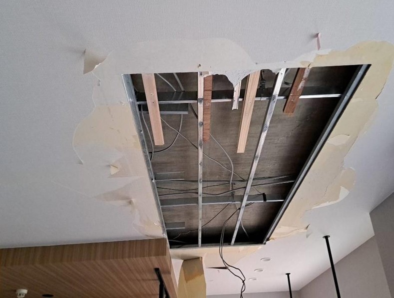 金沢市 マンション 漏水復旧 居間 天井ボード貼り替え クロス貼り替え