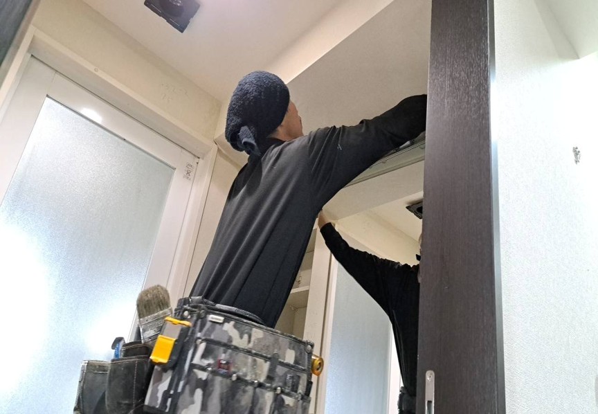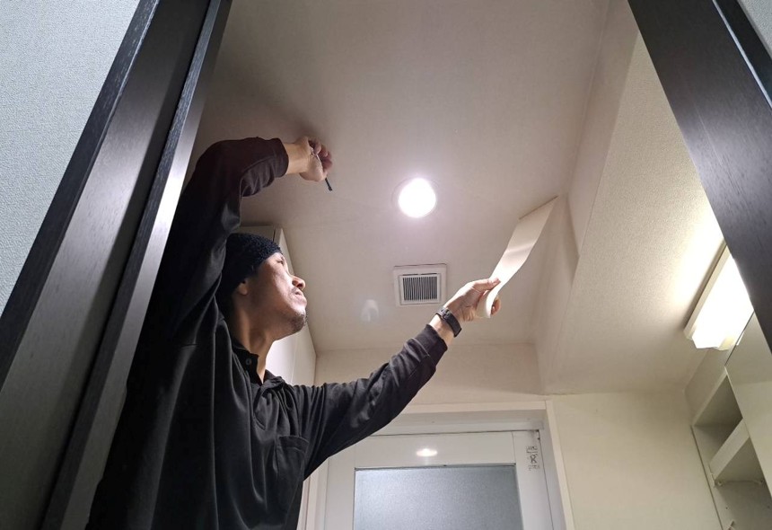 既存クロスを撤去し、新しいクロスへ貼り替えていきます。少しずつ空間がきれいになっていきます。新しい壁紙にすると雰囲気が一気に明るくなったり、クロスの色や模様によってお部屋の印象がかなり変わるのでおすすめです。お客様の好きな色や模様をお聞かせください♪