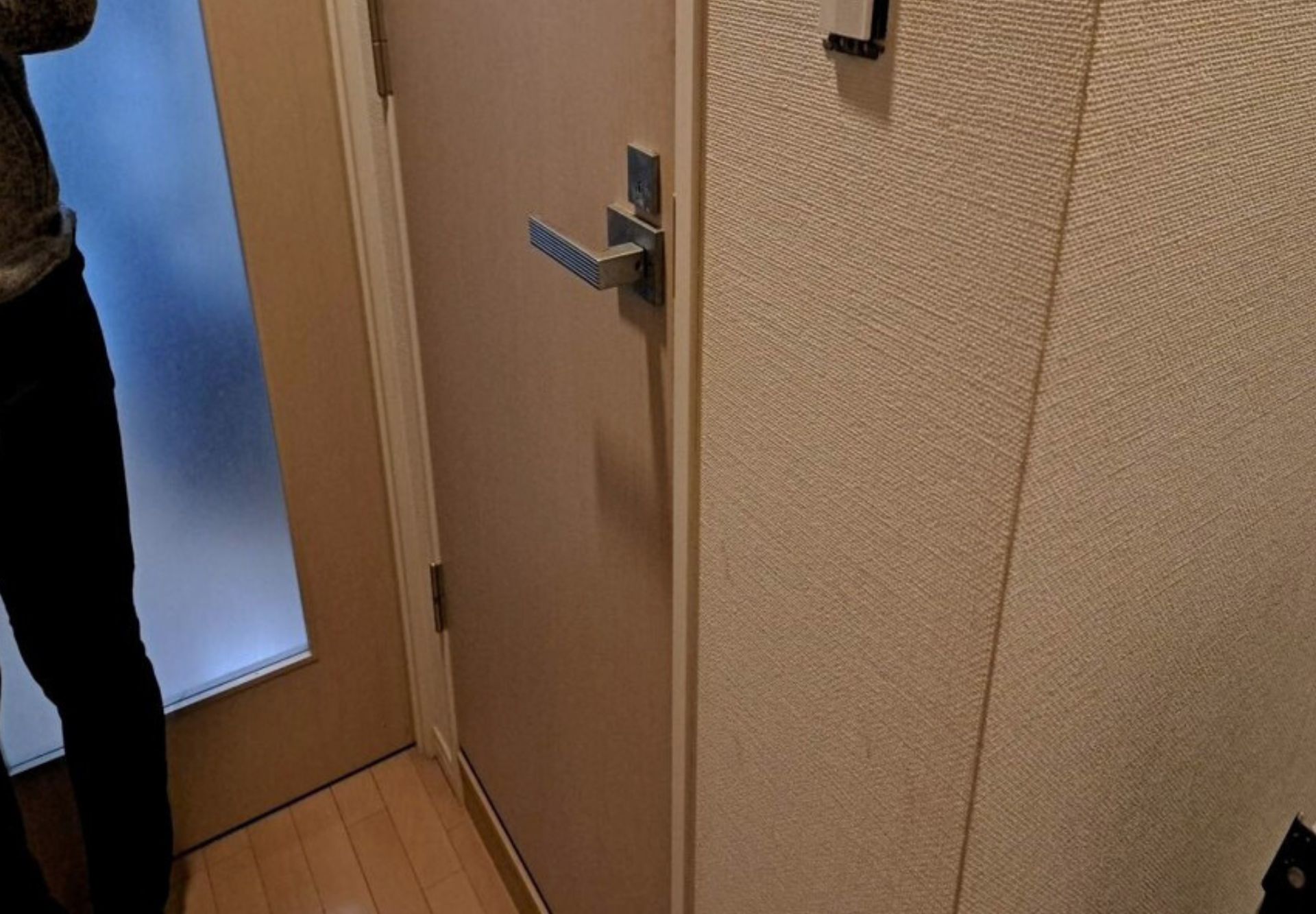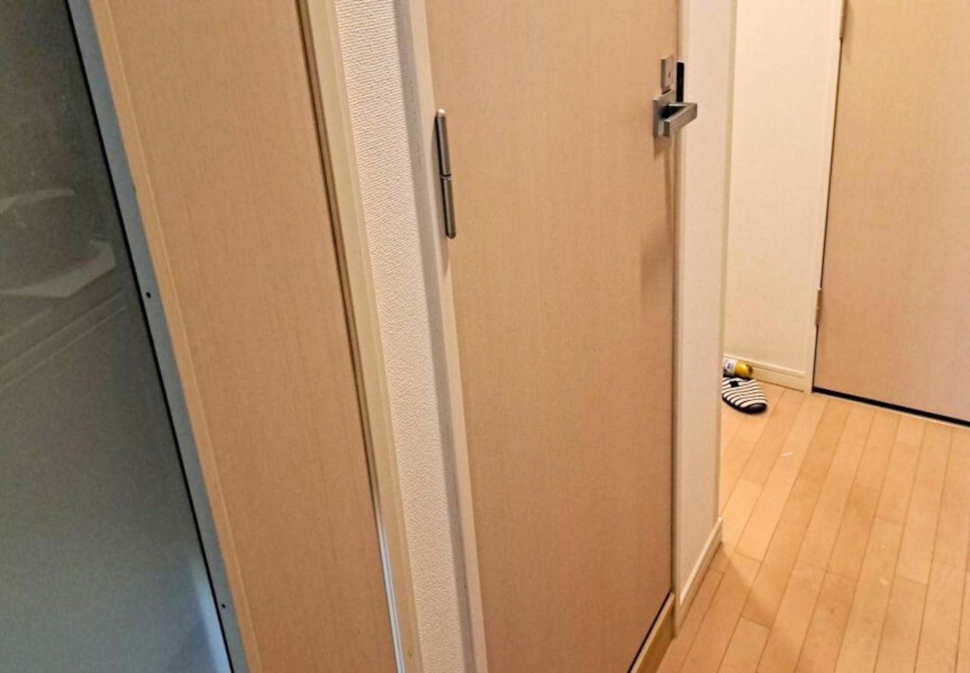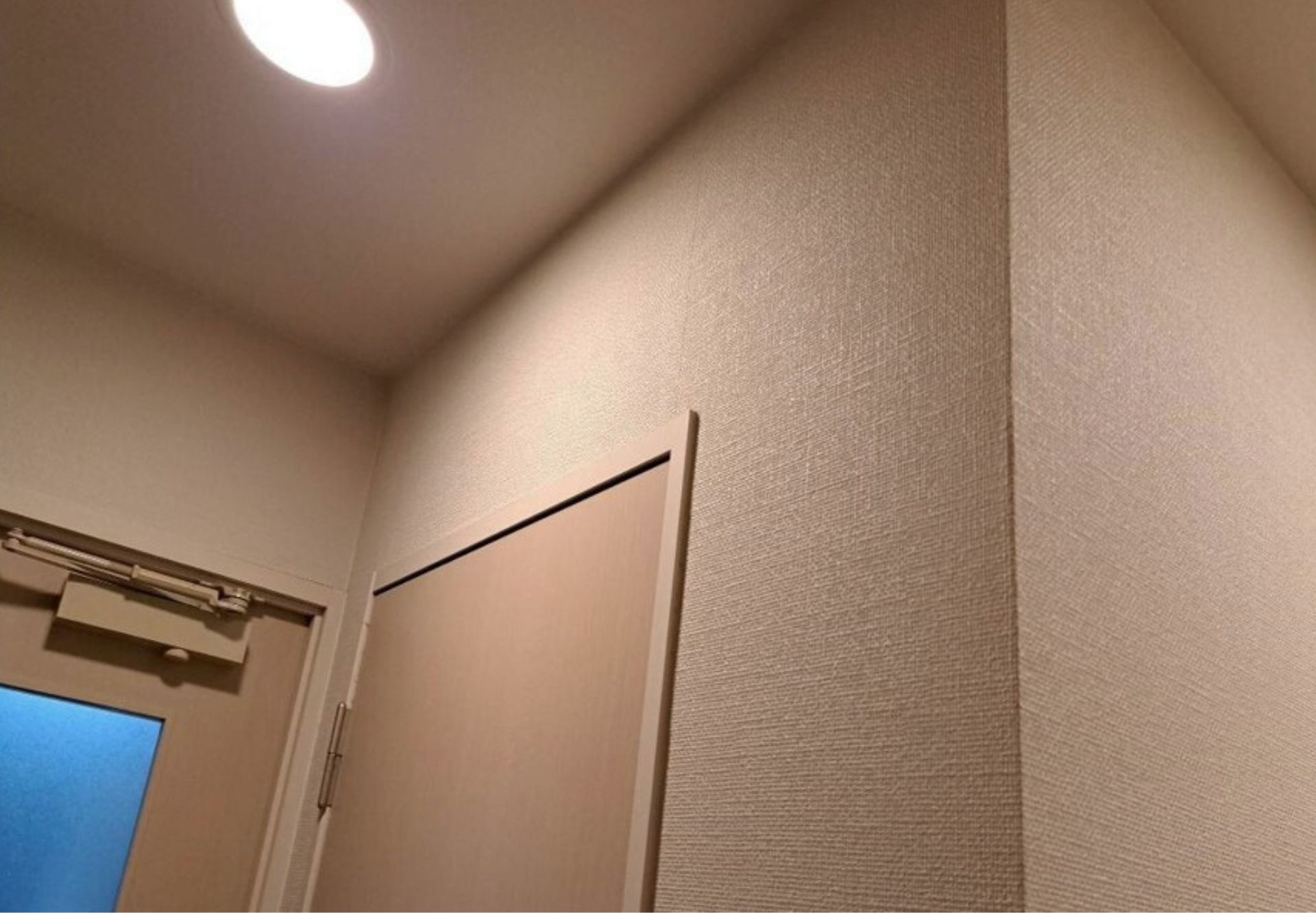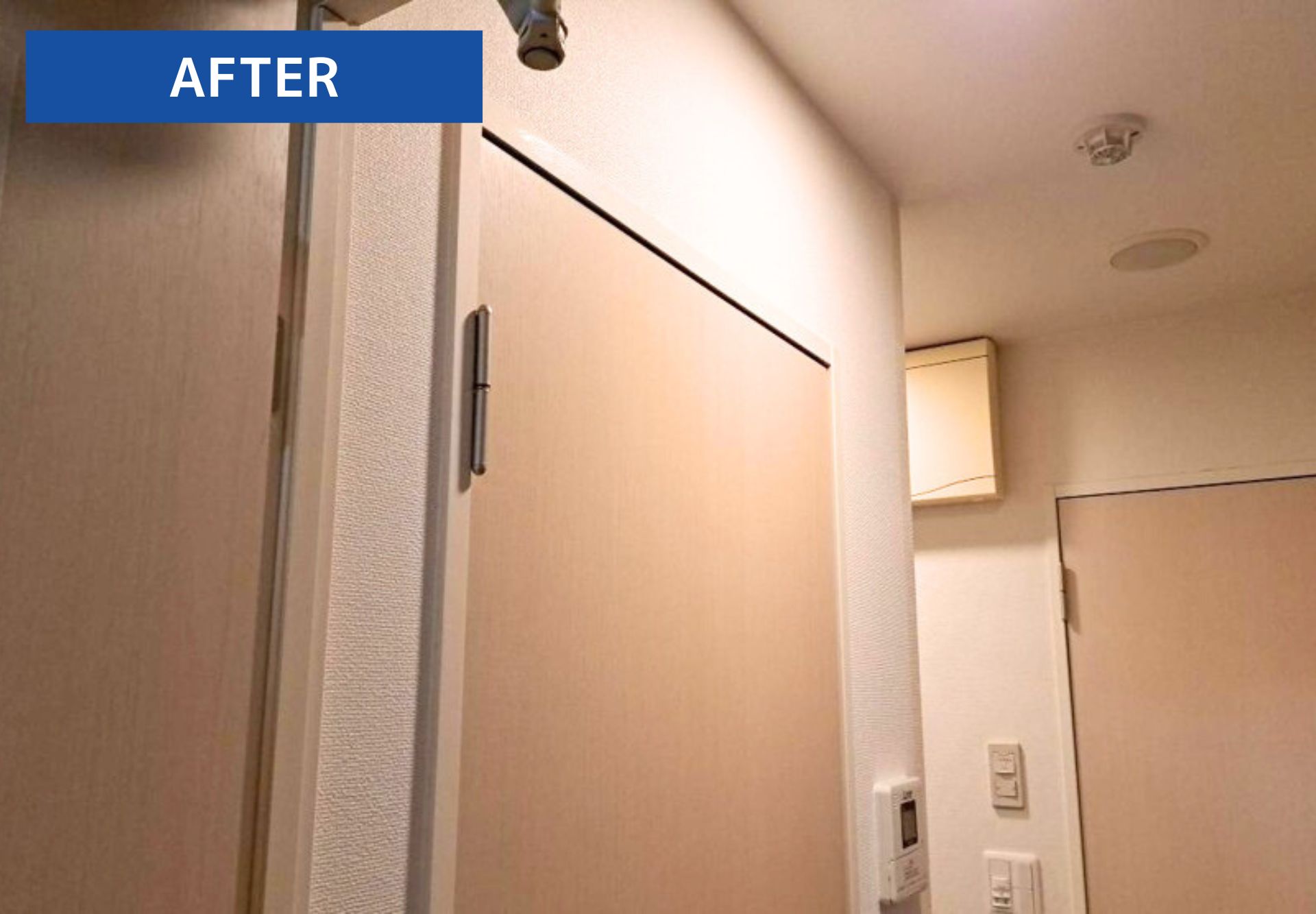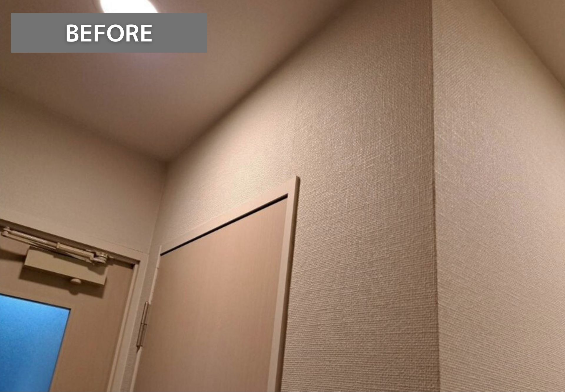 玄関のクロスが少しですが汚れ・傷みが見られる状態でした。クロスの貼り替えで空間をきれいに整えていきます。