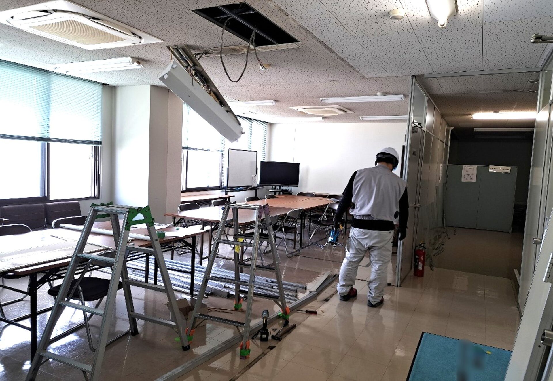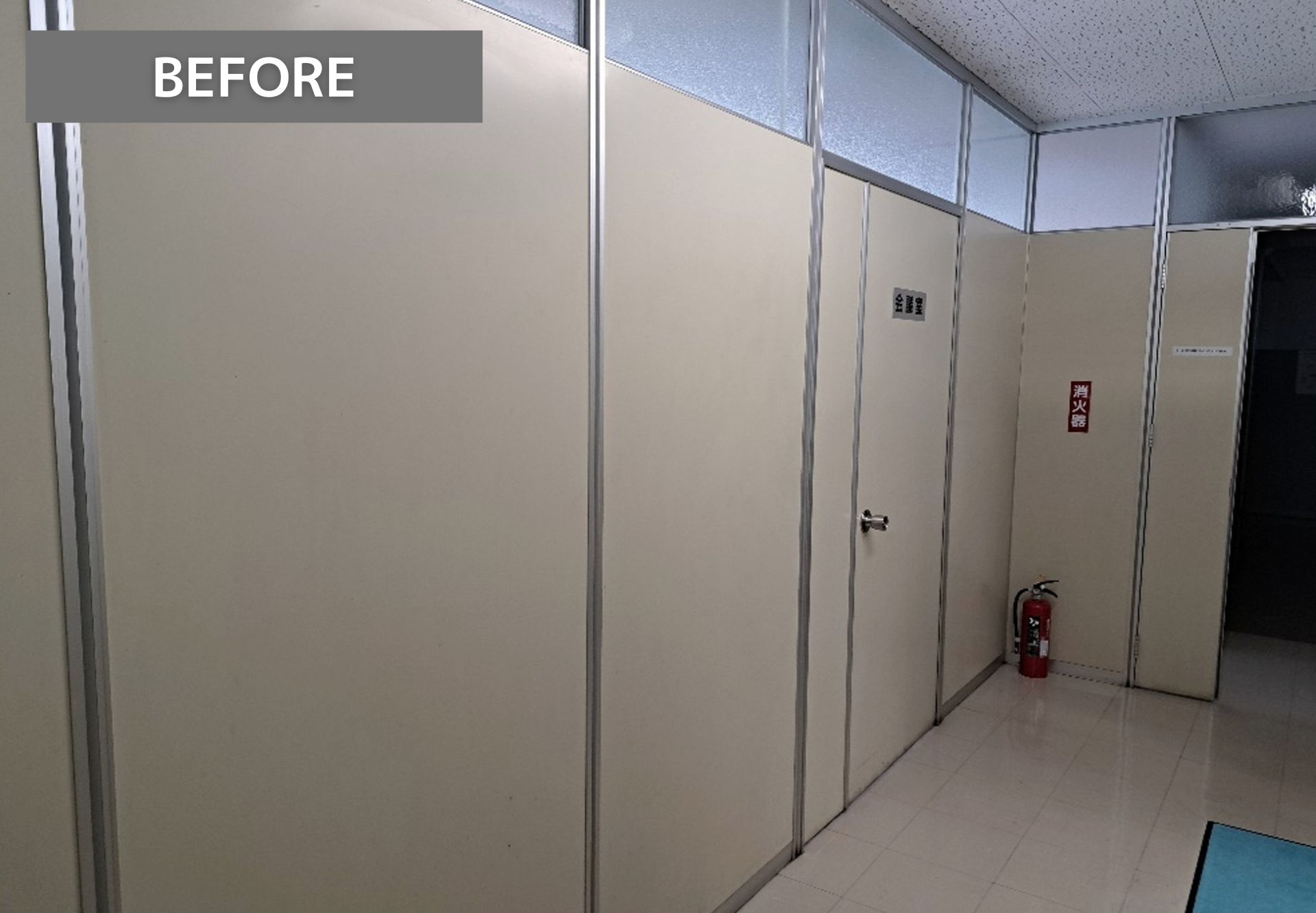 一見見た目はきれいですがよく見ると劣化している部分があります。パーテーションの移設を行いより快適な空間になるよう施工していきます。